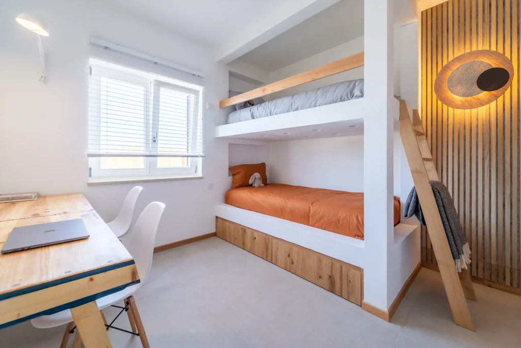 By converting this T3 into a spacious T4+1, we created two versatile rooms that transcend their basic function, offering the possibility of becoming inspiring workspaces for adults or cozy retreats for children and guests to enjoy moments of relaxation and fun.