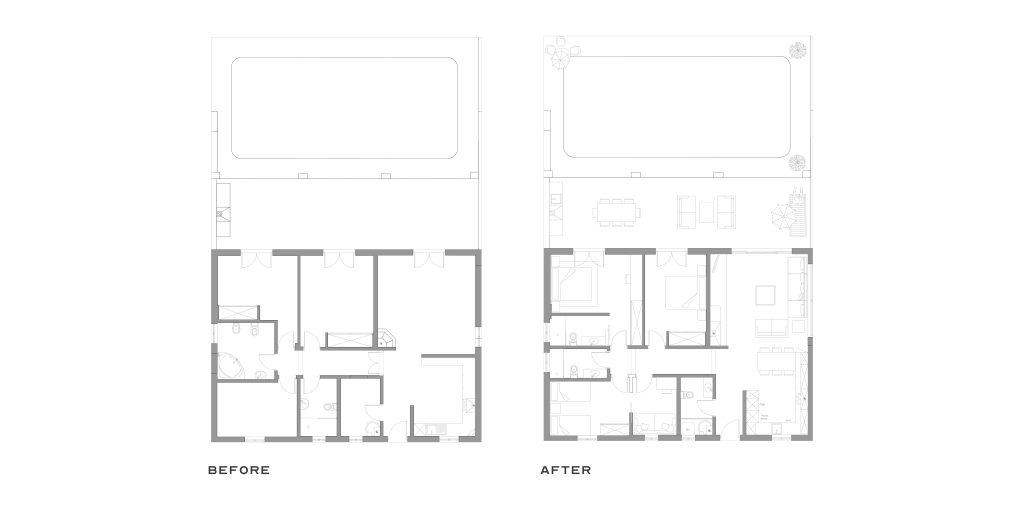 In this project, the house was transformed from a 3-bedroom and 2-bathroom Villa, into a 3+1 bedroom and 2+1 bathroom. We retained two spacious bathrooms from the original layout, including one as the master suite.
